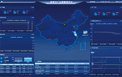 The digital operation management platform displays real-time data on operation status, production costs, energy consumption, produced water quality, and quantity of multiple water plants, making comprehensive monitoring and integrated management of all the water plants owned by one party.